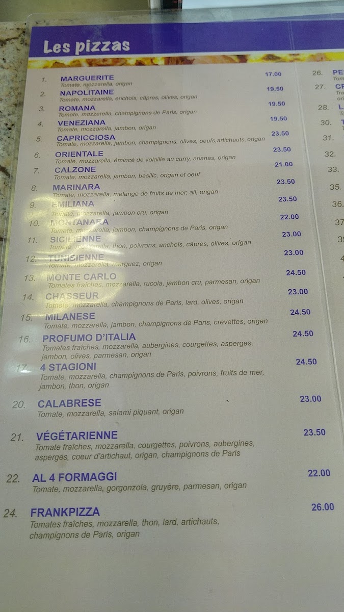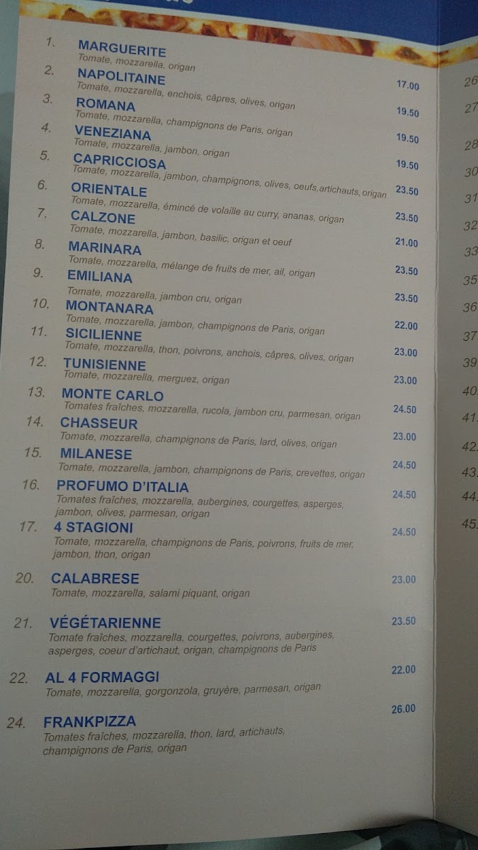 At Frank Pizza, located at Rte de la Petite Caroline 11, 1131 Tolochenaz, Switzerland, the menu offers a delightful variety of pizzas that cater to different tastes. One of the standouts is the Meilleure Pizza Du Monde, known for its exquisite combination of fresh ingredients and a rich, flavorful base that makes it a crowd favorite. For those who prefer something with a bit more indulgence, the Pizza Porchetta is a must-try, with its savory roasted pork and balanced toppings that create a perfect harmony of flavors.